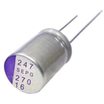 Panasonic 560 μ F OS-CON の高導電性ポリマー製アルミ電解コンデンサ構造です。優れたノイズ除去機能と長寿命を備えています。PC、モータドライバ、測定機器、電源、セキュリティカメラ、インバータで使用されるコンデンサです。低 ESR :(最大 15 MO ) 大容量(最大 560 μ F ) 定格電圧範囲は 2.5 → 16 V です