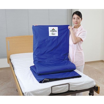 本体が柔らかいので、側臥位が取りにくい患者さんの体の下にも敷き込めます。本体が柔らかいマット仕様ですので、患者さんへの負担が低減できます。側臥位が取りにくい患者さんにもマットの回転機能を利用して体の下に敷き込めます。