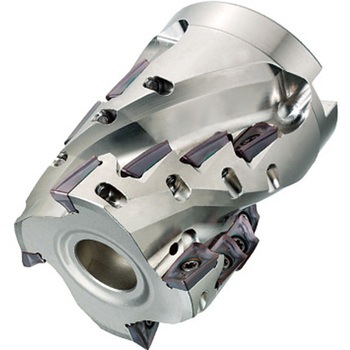 両面インサート式汎用肩削りカッタ「WWXシリーズ」は、強度を追求した独自開発”X形状”インサートを採用し、両面6コーナ使用可能な経済性と、さらい刃を大Rとすることで、無研削級のインサートでも良好な仕上げ面を実現した汎用肩削りカッタです。【特長】1. 両面使用可能な6コーナを持つ独自の「X形状」インサートを採用し、高品位と経済性を両立。2. 最適なすくい面形状と曲線切れ刃により、底面、外周面への切りくず飛散を抑制し、良好な仕上げ面を維持。3. 円錐形をした着座は着座面積を広く確保でき、曲面形状をしたインサート保持部により、信頼性の高いクランプを実現。4. 両面タイプながら刃先は片面タイプ並みのアキシャルレーキ角 9°を採用し低抵抗を実現、薄い加工部材でもびびり振動を抑制。5. 厚いインサートによりシートレスを実現したことでチップポケットを大きく確保でき、豊富な刃数展開を実現。