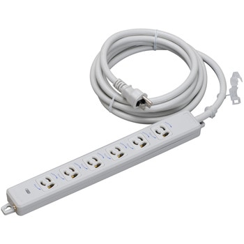 横形OA用抜け止め接地タップ6コ口パイロットランプ、マグネット付 VCT3m接地プラグ付 グリップ、ブッシング付明工社