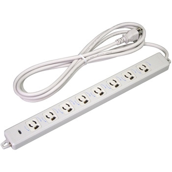 横形OA用接地タップ8コ口パイロットランプ、マグネット付 VCTF5m接地プラグ付(青駒)明工社