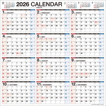 【K23】 2026年 書き込み式シンプル壁掛けカレンダー[1年/A2変型スクエア]永岡書店