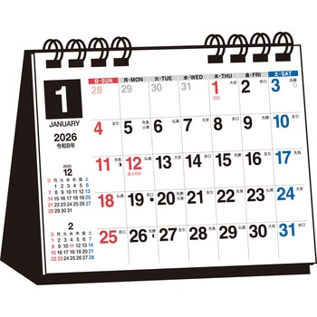 【T1】 2026年 シンプル卓上カレンダー[A7ヨコ変型]永岡書店