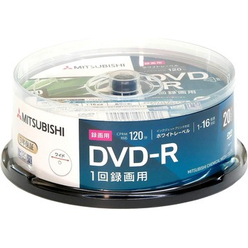 CPRM対応1回録画用DVD-R。ホワイトレーベルでインクジェットプリンタでレーベル印刷ができます。使い勝手のよいスピンドルケース入り20枚パック。