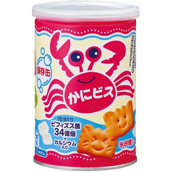 氷砂糖入り、ほんのり甘くて楽しいカニビスケット かにのかたちをしたほんのり甘い発酵ビスケットです。 ビフィズス菌+カルシウム入り。