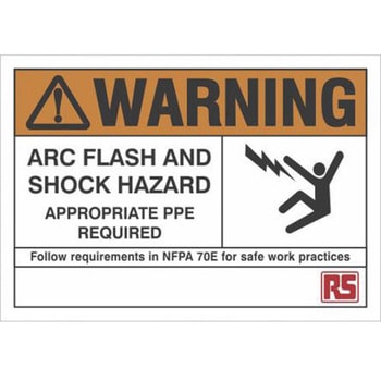 RS PRO 危険警告ラベル Warning - Arc Flash and Shock Hazard - Appropriate PPE Required - Follow Requirements in NFPA 70E forRS PRO