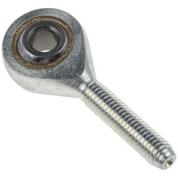 ロッド端ミニチュア - オス. C22/C35 Pbスチール、亜鉛めっき(不動態化)で製造されたメカニカルリンク 硬化ボール、研削・研磨100 cr6ボールベアリングスチール インサートはCu Zn 40 Mn Pb青銅。これらのベアリングには潤滑油が必要で、Molykote BR2が出荷時に充填済み 360°のうち+/-13°の偏心動作あり