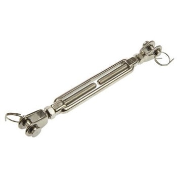 RS PRO Rigging Screw, Jaw to Jaw, M8If you need to fasten rigging safely, use this RS PRO rigging screw. The part is manufactured from durable stainless steel and features jaw fittings on both ends, which provides secure connection point for tensioned ropes. The screw has an open length measurement of 240 mm, close length of 165 mm and an eye diameter and thread size of mm. locking pin firmly holds each jaw in place and the screws rotating body allows you to increase or decrease the length as required. The part has total weight of 160 g. This type of rigging screw is useful for holding ropes at specific tension. Youll commonly see them used on suspension bridges, as part of boats rigging system and situations where two loads need tightening.Features and Benefits Jaw-to-jaw stainless-steel rigging screw Electro-polished finish End jaw fitting End jaw fitting Closed length of 165 mm Open length of 240 mm Eye diameter of mm Thread size of M8RS PRORS PRO is our own brand range and brings you wide range of high-quality, great value products offering you more choice. Trusted by engineers all over the world, every part of every RS PRO product has been rigorously tested against demanding industry standards they’re only given the RS PRO Seal of Approval if we’re confident of their exceptional quality, which means you can be confident too.