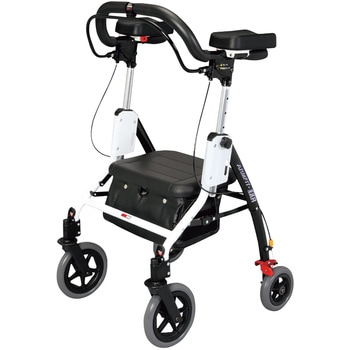 転倒予防をコンセプトにリーチハンドルと通常ハンドルを簡単切り替える事により、軽度の症状者から中度の症状者までご使用できる。軽量コンパクト(折畳み)。(自動車内等の積み込み手軽)片手にて両後輪のブレーキ作動ができる。