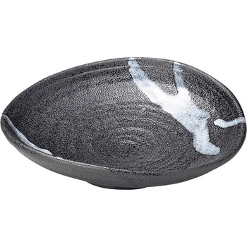黒釉錆吹波渕平鉢