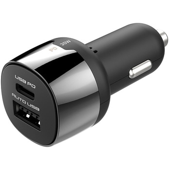 車のDCソケットをUSB-AとType-Cの2ポートのUSB電源に変換。USB PD(Power Delivery)対応USB Type-Cポート:最大30W、。クイックチャージ3.0対応USB-Aポート:最大18W。2ポート同時使用時:合計最大48W出力(PD30W+QC18W)2台の端末を同時に高速充電できます。通電確認用Type-Cポートに白色LED付きです。