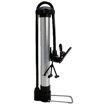 耐久性に優れたエンジニアリングプラスチック使用。小型・軽量ハンディータイプ。立てて使えばらくらく加圧。4種類(英式用・ボール用・浮き輪など2種類)のアダプターがハンドル内に収納。