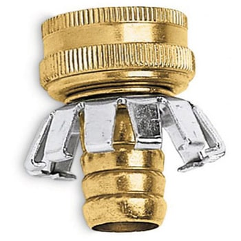 めねじカプラ、爪がホースをしっかりつかみます。爪を折り曲げて使用