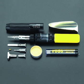 キット内容:半田ごて (EA304ZB-100A)、 1.0mmチップ (EA304ZB-1)、 ホットナイフ (EA304ZB-5)、 トーチ (EA304ZB-6)、 ブロワー (EA304ZB-7)、 こて先クリーナー、巻き半田 。ガスはブタンガス(EA916WR-10A)をご使用下さい。