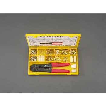 セット内容:ギボシ形プラグ0.5~2mm2用(20個)・ギボシ形ソケット0.5~2mm2用(20個)・ギボシ形プラグ用絶縁スリーブ(電線被覆外径2.5mm)(20個)・ギボシ形ソケット用絶縁スリーブ(電線被覆外径2.5mm)(20個)・110差込形プラグ0.5~1.25mm2用(20個)・110差込形ソケット0.5~1.25mm2用(20個)・250差込形プラグ0.5~2.0mm2用(20個)・250差込形ソケット0.5~2.0mm2用(20個)・クワ形端子0.5~1.25mm2(4mm用)(20個)・クワ形端子0.5~1.25mm2(5mm用)(20個)・110シェルセット(4極)(2組)・250シェルセット(2極)(1組)・スプライス1.25~2.0mm2(20個)・圧着工具(全長210mm)。