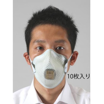入数:10枚。排気弁付き。首かけタイプ。高温多湿での粉塵の多い作業環境に適しています。未使用時に首に掛けられる排気弁付きの型崩れしにくいフィット感に優れたマスクです。ポリメッシュスケールにより型崩れがしにくく、長持ちします。一体成型加工のノーズブリッジ構造。メタルノーズバンドなしで簡単かつ快適にフィットします。顔の輪郭に沿った自然な面体構造が、顔との接点圧力を軽減します。排気弁がマスク内部の熱気を素早く外に逃がすため、作業者は呼吸がしやすく涼しさを保つことができます。長さ調整可能な織ゴム製HandyStrap付き。100% PVC フリー。(参考)N95アメリカNIOSH(国立労働安全衛生研究所)のマスク用規格N95をクリアし認可を受けた、使い捨てタイプの防塵用高性能マスクです。Notresistanttooil(耐油性はない)95%の微粒子(0.3マイクロメートル=3/10000mm以下)捕集効率~を意味しています。防塵装置の必要な産業用途のほか結核など、院内感染の防止用途にも用いられています。NIOSHの定めるマスク用規格の中では、最もベーシックなものです。【使用対象】。油分のない微粒エアゾール(煙霧質)。【使用できないもの】1.ガス、蒸気、アスベスト、サンドブラスト、ペンキスプレー、危険な蒸気2.未知の物質或は人体に危険を及ぼす物質3.最大使用濃度を超える物質、或はOSHA(職業安全衛生法・米国)のPEL(許容暴露限界)を10倍した濃度のもの。4.油分を含むミスト【制約事項】1.当製品は酸素の供給しませんので、酸素濃度18%未満の場所及び有毒ガスや有毒な蒸気が発生している場所では、絶対に使用しないでください。2.身体的ストレス(呼吸困難、めまい、吐き気)がある時は汚染地域に居残らないでください。3.当製品が破損したり変形したり、正しく装着できない時、或は呼吸が困難になった場合は、汚染地域から出て、防塵マスクを取替えてください。4.製品改造・変更したり、乱暴に扱ったりしないでください。5.未使用の防塵マスクは、清潔で乾燥している非汚染地域の箱に保管してください。6.各地域の規定、及び関連法規に基づいて破棄してください。7.使用済のマスクは廃棄してください。【取付方法】1.ストラップの先端を首の後で止めてください。2.鼻とあごがマスクの中にスッポリはまるように取付けてください。3.輪状のストラップを後頭部にかけてください。4.使用前に両手でマスクを押さえ深く域を吸込んでください。マスク内で圧力がかかれば正しく着用されています。エア漏れがあるなら再調整してください。5.使用しない時は、首の後で止めたストラップの先を外すと、首からぶら提げることができます。