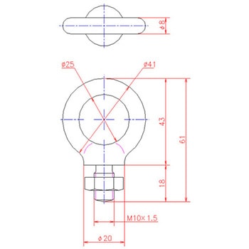 材質内径(Φmm)20ねじ径M8線径(Φmm)6.3使用荷重(kg)80ねじ径(mm)M8×15表面処理ユニクロメッキアイ部内径(Φmm)20