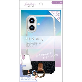 iPhone 16 [FINO Ring] ストラップリング付き 背面クリアハイブリッドレザーケース ブラックトリニティ
