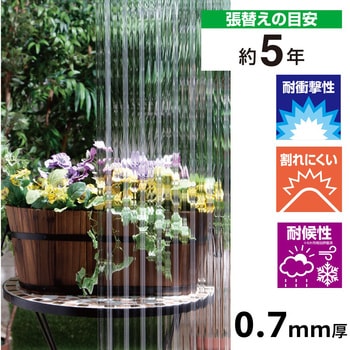 硬質塩化ビニル製で断面が波型の板です。屋根材や壁材としてご利用いただけます。