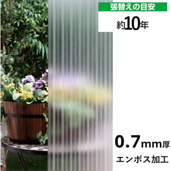 合成樹脂の中でも強度が高く、割れにくいポリカーボネート製で断面が波型の板です。エンボス加工を施しているので遮光性が高く、光を通しません。屋根材や壁材としてご利用いただけます。
