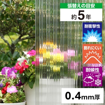 【0.4mm】【軽量】【耐久強度】。ポリカーボネート製で断面が波型の薄型軽量版です。屋根材や壁材としてご利用頂けます。薄さ0.4mmで軽く、 柔軟性があり作業時に取り扱いやすいです。20cm以上の積雪にも耐えられる丈夫さを兼ね備えたポリカ波板です。サイズ・カラー展開も種類豊富で用途や場所に合わせてお使いいただけます。台風など災害時や防災用途でも活躍する商品です。