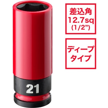 SHOCKWAVE IMPACT DUTY ホイールナット用インパクトソケット 1/2インチ(12.7mm)角 21mm(赤)ミルウォーキーツール
