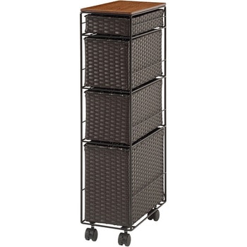 ランドリー 収納 バスケット 4段 幅 40 cm 薄型 スリム キャスター付き ラタン風萩原