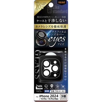 iPhone 16 Pro / 16 Pro Max / 15 Pro / 15 Pro Max Like standard eyes ガラスフィルム カメラ保護 3枚1セット レンズカバー 硬度10H / ブラックレイ・アウト