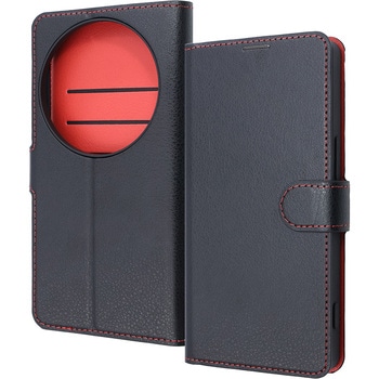 AQUOS R9 pro Like standard 耐衝撃 マグネットベルト シンプル 手帳型レザーケース / ブラック_レッドレイ・アウト