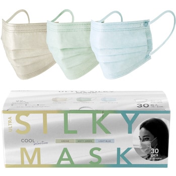 不織布マスク ウルトラシルキー 3色セット(ミスティグリーン/グレージュ/ライトブルー) ふつうサイズ(個包装)プラスライフ