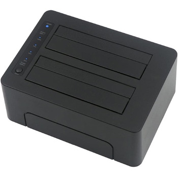 ブラックに統一しパソコン無しでクローン(複製)ができるHDD/SSDスタンドです。パソコンに接続する必要が無く、本体にセットしたHDD/SSD内のデータを簡単にクローン(複製)することができます。新しいドライブへのデータ引っ越しや大切なデータのバックアップまで本製品1台で作業することができます。パソコンに接続すればUSB3.2(Gen1)UASPモードで高速データ転送が可能です。最大48TB(24TB×2台)の大容量データを管理することができます。複製(クローン)モード ~HDD/SSDの引っ越し・完コピに最適~HDDスロット1に複製したいHDD/SSDをセットし、HDDスロット2に空のHDD/SDDをセットすれば、ボタンを押すだけでまるごとクローンができます。不良セクタを飛び越えて完了できるエラースキップ(エラー回避機能)に加えて、従来の2倍以上となる400MB/sを越える高速クローンが可能となります。エラースキップ機能(エラー回避機能)搭載!従来のエラースキップ機能非対応モデルではコピー元HDDに不良セクタが発見されると、動作がストップしてしまいクローンを完了できませんでしたが、本製品はエラースキップ機能が発動し、不良セクタを飛び越えて強制的にクローンが完了できます。ディスクチェック機能搭載クローン開始前にディスクSMART情報を自動チェックし、クローン元と先の状態を確認します。異常を検知した場合は赤ランプでお知らせし、安全のためクローンを開始しません。正常なHDD/SSDへ交換することで、安心かつ安全に完全なクローン作業を行うことができます。外付けHDD/SSD(PC)モード ~大容量のデータ管理に最適~HDD/SSDをセットしてパソコンにUSB接続することにより、外付けドライブとして使用することができます。合計最大48TB(24TB×2台)のデータが管理でき、USB3.2(Gen1)UASPモード接続で高速データ転送を体現することができます。省電力モード機能が搭載されておりますので、余分な電力の消費を抑えることができます。省電力機能(ECO)電源連動機能接続しているパソコンの起動・終了に合わせて自動でHDDを回転・停止させます。スリープ機能HDDに10分以上アクセスが無いと自動でHDDの回転を停止します。再度HDDにアクセスすると自動で復帰します。オモテ、ウラを気にせず挿し込める"USB Type-C"ポート搭載本体ケース側にはUSB Type-Cポートを搭載し、「USB Type-C Plug Flip-ability」となっており、 ケーブルプラグのウラ、オモテを気にすることなく接続することができます。