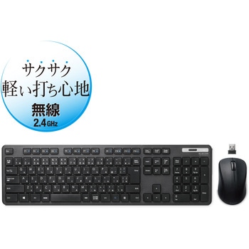 セット内容無線薄型フルキーボード×1、無線BlueLEDマウス×1、共通レシーバー×1、動作確認用単4形アルカリ乾電池×1、動作確認用単3形アルカリ乾電池×1、ユーザーズマニュアル×1色ブラック質量(g)【キーボード】約505※電池含まず、【マウス】約57※電池含まず、【レシーバー】約2電源【キーボード】単4形アルカリ乾電池、単4形マンガン乾電池、単4形ニッケル水素2次電池のいずれか1本対応OSWindows 11、Windows 10、Windows 8.1、Windows 7、Windows XP ※各OSの最新バージョンへのアップデートや、サービスパックのインストールが必要になる場合があります。コネクタ形状USB(A)オス対応機種USBポートを装備したWindows OS搭載機分解能【マウス】1600カウント対応【マウス・レシーバー収納】対応外形寸法(幅W×奥行D×高さH)(mm)【キーボード】441.5×127.6×25.0(スタンド含まず)、441.5×127.6×33.5(スタンド時)、【マウス】59.3×100×37.8、【レシーバー】19.5×15.8×6.5通信方式GFSK方式インターフェースUSBキー配列109キー(日本語配列)LED色【マウス】ブルー保証期間6カ月間キー方式メンブレンキーストローク(mm)2.5ボタン数【マウス】3個 ※ホイールボタン含む電波到達距離(m)磁性体(鉄の机など)の上で使用する場合:約3、非磁性体(木の机など)の上で使用する場合:約10※メーカー環境でのテスト値であり保証値ではありません。連続動作時間【マウス】約384時間キーピッチ(mm)19連続待機時間【マウス】約1041日ホイール数【マウス】1個電池使用可能期間【キーボード】アルカリ乾電池使用時の目安 約2年 ※メーカーテスト値、【マウス】約2年 ※1日8時間のパソコン操作中5%をマウス操作に割り当てた場合ホットキー数12キー読取方式【マウス】光学センサー方式電波周波数2.4GHz帯