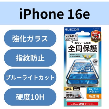iPhone16 ガラスフィルム 高透明 全面保護 365日交換保証 表面硬度10H 角割れ防止 フレーム付 指紋防止エレコム