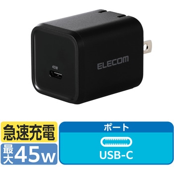 USB Type-C(TM)(USB-C(TM))ポートとUSB Type-Aポートの合計3ポートを搭載し、iPhoneなどのスマートフォンと完全ワイヤレスイヤホンとWindowsなどのノートパソコンを3台同時充電できるUSB AC充電器です。小型・軽量なので外出や出張などの際の持ち運びに便利です。USB Type-C(TM)(USB-C(TM))ポートとUSB-Aポートの合計3ポートを搭載し対応するスマートフォン、タブレット、ノートパソコンなどを充電できる、GaN(窒化ガリウム)を採用し小型で軽量なUSB AC充電器です。※USB Power Delivery規格65Wまでで充電できる機器に限ります。出力端子が3ポートあるので、iPhoneなどのスマートフォンと完全ワイヤレスイヤホンとWindowsなどのノートパソコンを3台同時充電できます。※2ポート以上同時出力時は合計最大65Wとなります。USB Type-Cポートは、USB Power Delivery規格、オプションのPPS(Programmable Power Supply)規格に対応し、同規格に対応するノートパソコンやスマートフォン、タブレットなどを充電可能です。USB Type-Cポート単独使用時、機器に応じて出力が5V/3A、9V/3A、12V/3A、15V/3A、20V/3.25Aと可変し、iPhoneなどのスマートフォンから、iPadなどのタブレット、高性能なWindowsノートパソコンまで幅広く充電できます。USB-Aポートは、最大出力12W(5V2.4A)でスマートフォンや完全ワイヤレスイヤホン、スマートウォッチなどを充電、給電ができます。接続された機器を自動的に見分けて適した出力で充電できる”おまかせ充電”に対応しています。小型・軽量なので外出や出張などの際の持ち運びに便利です。未使用時は、電源プラグを折りたたんで充電器本体に収納できるので持ち運びにも便利です。耐トラッキング性の要求事項(PSE:電気用品安全法)を満たしたコンセントプラグを採用しています。USB Power Delivery(パワーデリバリー)とは、アダプターと接続機器間で情報をやり取りすることで、その機器間における最適な電力を選択し、高速充電を実現するUSB規格です。本製品はUSB-IFのテストと同等のテストをメーカー独自で実施し、高い安全性が保たれており、USB Power Delivery対応製品にご使用いただけます。PPS(Programmable Power Supply)とは0.2V単位で電圧を調整し、最適な電力で効率的に供給することができるUSB Power Delivery 3.0のオプション規格です。※本製品のUSB Power Delivery最大出力は65Wです。PPS(Programmable Power Supply)最大出力は45Wです。※本製品にケーブルは同梱しておりません。別途MFi認証品のUSB Type-C - Lightningケーブルや、エレコムのUSB規格認証USB Type-C - USB Type-Cケーブル等をご用意ください。※機器本体や充電器が濡れた状態で充電すると、異常な発熱・焼損の原因となり大変危険ですのでおやめください。※USB Type-C and USB-C are trademarks of USB Implementers Forum自社環境認定基準を1つ以上満たし、『THINK ECOLOGY』マークを表示した製品です。廃棄物削減に取り組み、製品に同梱する取扱説明書等をペーパーレス化した製品です。環境保全に取り組み、製品の包装容器におけるプラスチック重量を、社内基準製品より20%以上削減した製品です。環境保全に取り組み、製品の包装容器が紙・ダンボール・ポリ袋のみで構成されている製品です。
