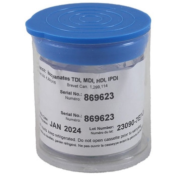 用途ISO-CHEKは、HDI、MDI、IPDI、HMDI、2,4-TDI、2,6-TDIを含むジイソシアネートについて、捕集時点でモノマーおよびオリゴマーを同時に捕集・分離できる唯一のフィルターベースサンプリングシステムであり、高感度な物理的および化学的特性評価に対応します。IRSSTにより開発されたISO-CHEKは、15分間の迅速なサンプリングが可能で、サンプルの安定性に優れ、他の方法と比較してサンプル前処理および分析時間を約40%短縮します。ASTM D5932-96およびD6561-00の規格に適合しています。仕様●検出下限:0.2 mg/m3(2・4-TDI・2・6-TDI)/0.6 mg/m3(1・6-HDI)/0.3 mg/m3(UV)・0.08 mg/m3(蛍光)(MDI)●分析方法:逆相HPLC(UVおよび蛍光検出)●保管条件:要冷蔵・保存期間制限あり●保存安定性:4 ℃で最大10日間保存可(無溶媒環境で保管・早期分析推奨)●捕集方式:デュアルフィルターカセット方式(5 μm PTFE膜でエアロゾル相捕集・MAMA含浸ガラス繊維で蒸気相捕集)●誘導体化試薬(蒸気相):9-(N-メチルアミノメチル)アントラセン(MAMA)●誘導体化溶液(エアロゾル相):1-(2-メトキシフェニル)ピペラジン(MOPIP、0.5 mg/5 mLトルエン)材質カセット:スチレン、PTFE/ガラス繊維(2層構成)表面処理9-(N-メチルアミノメチル)アントラセン(MAMA)コーティング構成カセット構成3ピース従来型流量(L/min)サンプリング:1サンプリング時間:15分定量下限0.15 ppb(2・4-TDI・2・6-TDI・1・6-HDI・IPDI・MDI・HMDIモノマー)/1.5 ppb(1・6-HDI・MDIオリゴマー)直径(mm)37