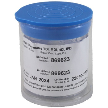 コーティングフィルターで、ISO-CHEK(R) Filterとして、9-(N-メチルアミノメチル)アントラセン(MAMA)でコーティングしたPTFEフィルター1枚およびガラス繊維フィルター1枚を、イソシアネートの蒸気相および粒子相を分離・捕集する37 mmの2段式カセットにプレロード済みで組み込んだ構成です。使用にはCat. No. 225-9050が必要です。なお、ISO-CHEK(R) Sampling Systemでの使用に必要なDerivatizing Solutionは付属しません。Derivatizing Solutionを含むISO-CHEK(R)カセットについては、Cat. No. 225-9023または225-9023Aを参照してください。