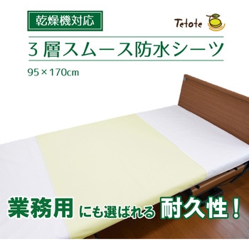 さらっとしなやかなスムースニットを表裏両面に貼り合わせた3層の防水シーツです。表面スムースニット+ポリウレタンフイルム+裏面スムースニットの3層になっており、ポリウレタンフィルムを中心に挟み込むことで、繰り返しの洗濯にも強く、耐久性に優れています。スムースニットは伸縮性に優れ、滑らかな肌触りです。シワになりにくく軽量の防水シーツで、両面使えるのでコストパフォーマンスも非常に優れています。こちらの商品も耐熱120℃の為、乾燥機や電気毛布の使用が可能。