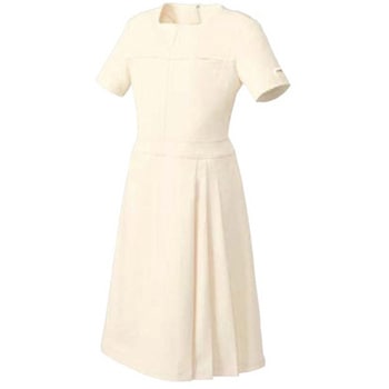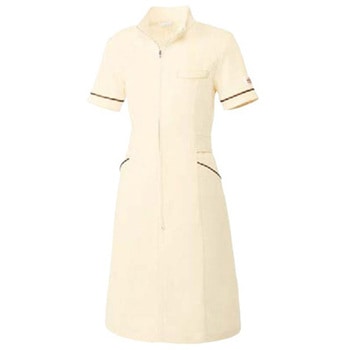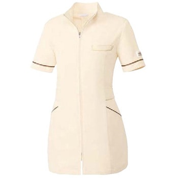 厚みがあり、上品な雰囲気を与える「ストレッチラチネ」。軽い着心地と、しっかり伸びるストレッチ性能、チリやホコリが付きにくい制電性能と、快適、清潔な機能が充実した生地です。オリジナルネーム付、ボタンアップ、スタンドカラーとフロントファスナーがクールで芯のある女性を演出。ウエスト部分はベルトですっきりと見せ、背中のボックスプリーツで作業のしやすさアップ。