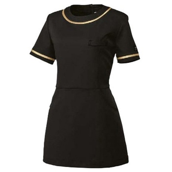 厚みがあり、上品な雰囲気を与える「ストレッチラチネ」。軽い着心地と、しっかり伸びるストレッチ性能、チリやホコリが付きにくい制電性能と、快適、清潔な機能が充実した生地です。オリジナルネーム付、首元や袖口にサテンテープを施したシンプルなデザインのワンピース・チュニック。高めのウエスト位置でスタイルアップ。