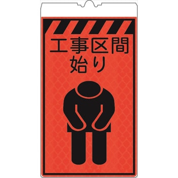 カラーコーン用標識コーンサインオレンジ高輝度反射 工事区間始り仙台銘板
