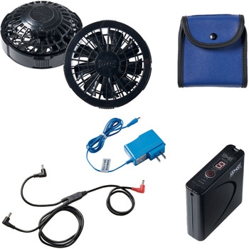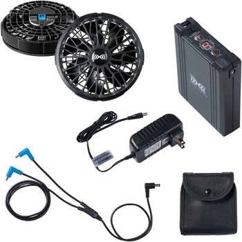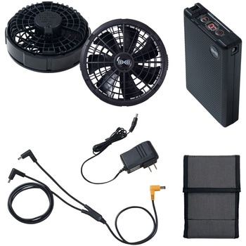 空調服(R)を起動するために必要なデバイスをロングケーブルにしてワンパックでご用意しました。最大瞬間風量106L/秒。ターボモード(*1)対応ファン。最大風量106L/秒。圧倒的なパワーで大風量・長寿命・高効率を実現。パーツを取り外して水洗いが可能です。(※上蓋とプロペラは取り外して水洗い可能。ファンを清潔に保つことができます。水洗い後はしっかり乾かしてから取り付けてください。)最大電圧18Vの大容量バッテリー。瞬間冷却を可能にする、ターボモード(*1)の他、15V、10V連続モード、10Vゆらぎモード(*2)、6Vなど5段階切替が可能。防塵防水(*3)で屋外での使用も安心です。赤色LEDで屋外での視認性良好。防水・防塵(JIS IP55規格適合)(*3)9段階の残量表示*1 ターボモードとは、18Vで20秒、16V(96L/秒)で4分40秒動作後、12V(74L/秒)へ自動移行するモードです。ターボモードをご使用いただくには”6”相当のバッテリー残量が必要です。再度、ターボモードをご使用になる際には25分間のインターバルが必要です。*2 ゆらぎモードとは、出力電圧10Vと8Vを一定の間隔で自動で切り替え、10V連続モード時に対しバッテリーの持ち時間を延ばすモードです。*3 水没などの水の浸入による故障を保証するものではありません。