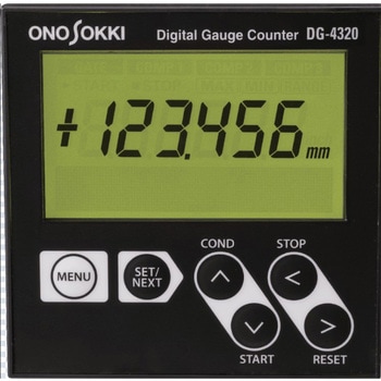 付属品取扱説明書、パネル取り付け金具、端子台カバー適合小野測器リニアゲージセンサー (GS-3800シリーズを除く) 2相および1相矩形波電圧出力タイプの小野測器センサー (エンコーダ等)センサー用電源出力 DC5V±10 %、200 mA質量(g)約320使用温度範囲(℃)0~40外形寸法(mm)72(W)×72(H)×114(D)電源AC100~240V電源電圧AC100~240V(50/60Hz) 6VA以下(AC100V時)表示LCD表示 セグメント、ドットマトリクス複合表示 2色バックライト付き 6桁表示表示方式LCD表示 セグメント、ドットマトリクス複合表示 2色バックライト 6桁表示分解能(μm)0.5、1、10から選択(入力センサーとしてエンコーダー選択時、単位は表示されません)センサ用電源DC5V 200mA 、DC12V 150mA(オプション DG-0430装着時)機能(演算)オフセット機能、逓倍切り替え機能、小数点位置変更機能、係数補正機能/(パネルコンディションメモリ)設定パラメーターをデジタルゲージカウンター内部に保存(4条件)入力信号2相位相差矩形波、1相矩形波 (内部設定切り替えで対応)適合センサ小野測器リニアゲージセンサー (GS-3800シリーズを除く) 2相および1相矩形波電圧出力タイプの小野測器センサー(エンコーダ等)デジタル出力BCD出力 更新時間 10ms オープンコレクター出力(正負論理切り替え可能)表示範囲0~±199999(0.5μm分解能選択時、1桁目は0または5のみを表示します)入力周波数(Hz)DC~300k保存温度範囲(℃)-10~55数値表示瞬時値、Max値、Min値、Max値-Min値(RANGE値)
