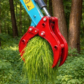 アームへの負担が3点に分散して丈夫!1トンクラスのミニショベルには大きな負担になりません。交換する時も軽くて取り扱いやすいです。3点止めフォーククロー(両側が動きます!)