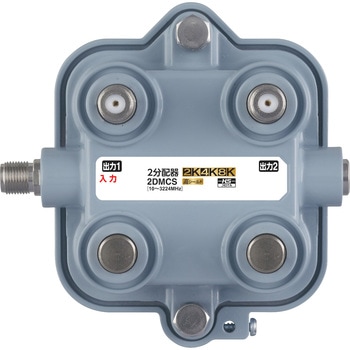 新4K8K衛星放送(3224MHz)対応の、アンテナからの入力信号を均等に二つに分けることができる、屋内用2分配器です。全ての出力端子から入力端子へ電流(DC15V・0.8A以下)が通過する、全端子通電形。樹脂ケースの内部はノイズに強いダイカスト構造です。JEITA SHマーク登録済。ポリ袋入り商品。自社環境認定基準を1つ以上満たし、『THINK ECOLOGY』マークを表示した製品です。 全端子通電形2分配器。テレビの電波を2つに分けます 。新4K8K衛星放送に対応。従来の2K放送のテレビでも使用できます。ケーブルテレビでも使用できます。本体ダイカスト製高シールド構造。JEITA SHマーク認定商品 。取説付属なしかつ簡易梱包仕様 。自社環境認定基準を1つ以上満たし、『THINK ECOLOGY』マークを表示した製品です。廃棄物削減に取り組み、製品に同梱する取扱説明書等をペーパーレス化した製品です。環境保全に取り組み、製品の包装容器が紙・ダンボール・ポリ袋のみで構成されている製品です。法規関連:RoHS(10物質対応)、スーパーハイビジョン受信マーク(SHマーク)登録、JEITA統計分類:分配器・分岐器(ホーム受信用)