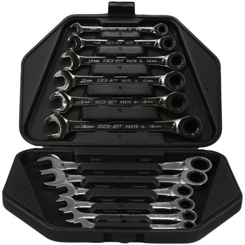 メガネレンチは8-24mm、ソケットは8-32mmと幅広いので、工場などのハードな作業で活躍します。