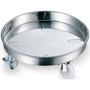 重い寸胴鍋等を簡単に移動できる便利な台車です。キャスター付ですので、重い寸胴鍋を冷蔵、冷凍室への移動もスムーズに行う事が可能です。運搬用台車を使う事で寸胴鍋を床に直置きする事を防ぎ、ゴミや異物混入の予防となります。HACCP(衛生管理対策)にもおすすめです。低重心設計の為、倒れにくい。本体の表面に凸凹があり、密着を防ぎます。キャスター4個の内、2個はストッパー付のキャスターが取り付けられています。キャスター…腐食しにくいナイロン製(キャスター車輪径Φ65mm)