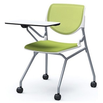 ルナ ネスティング 肘無 テーブル付 背メッシュ ホワイトシェル シルバーフレーム ナイロン双輪オカムラ(岡村製作所)
