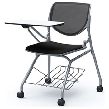 ルナ ネスティング 肘無 テーブル付 背メッシュ ブラックシェル シルバーフレーム ナイロン双輪オカムラ(岡村製作所)