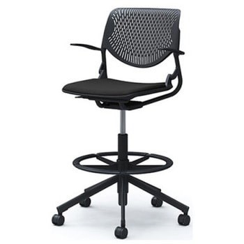 ルナ 5本脚ハイチェア 肘無 背パッド付 ブラックシェル シルバーフレーム ナイロン双輪オカムラ(岡村製作所)