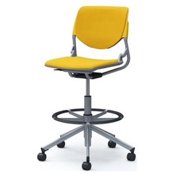 ルナ 5本脚ハイチェア 肘無 背パッド付 イエローシェル シルバーフレーム ナイロン双輪オカムラ(岡村製作所)